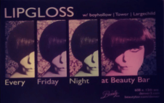 When Tyler Jacobson and Michael Trundle first met at Paris on the Platte, Denver’s goth cafe, they spent hours exalting music and ridiculing the world around them. It only made sense that they would become DJs and that their first project together, Lipgloss, was a vibrant misfit in the Denver club scene. Naming it after a Pulp song and founding it under the moniker the Denver 3–Tyler, Michael, and their dapper friend Tim Cook–Lipgloss’ raison d’être was about what it is not almost as much as what it is.